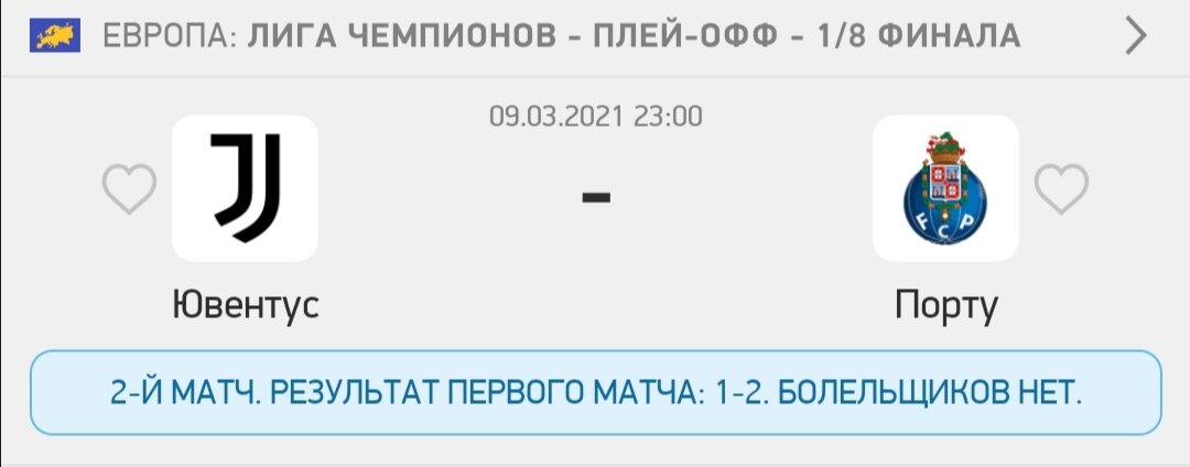 Туринский Ювентус в ответном матче 1/8 финала Лиги чемпионов попытается отыграться в поединке с португальским Порту.