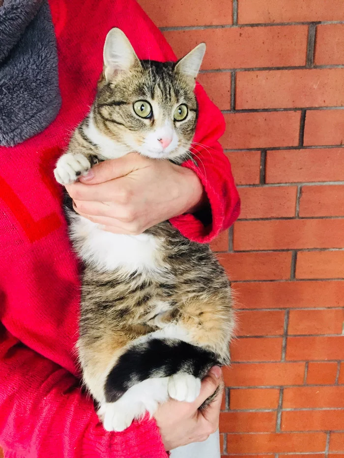 Эта кошечка приехала ко мне на передержку от одной группы помощи около года назад, да так и осталась. Ее мать сбила машина и они вдвоем прятались в любую погоду под кустом у дороги. Она и ее сестра Агата приехали ко мне. Агате я нашла дом почти сразу же. Она большая, полосатая, довольно упитанная.