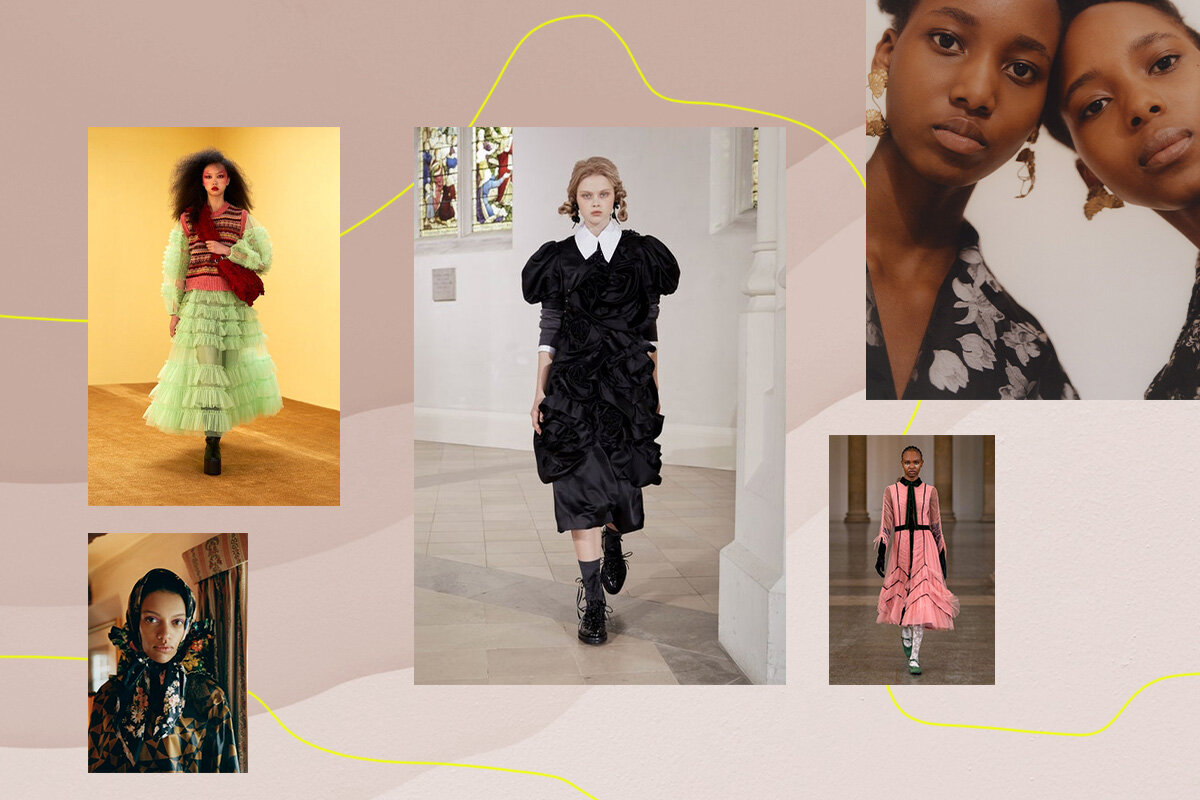 Прически, которые у многих из нас вызывают ностальгию по детству и школьным годам, теперь на пике популярности. Hair-стилисты Simone Rocha вдохновились ретрообразами (а возможно, прическами, которые мы самостоятельно заплетали из своих волос на карантине) и вывели своих моделей на подиум с плетениями и пучками, скрепленными нежными бархатными бантами.