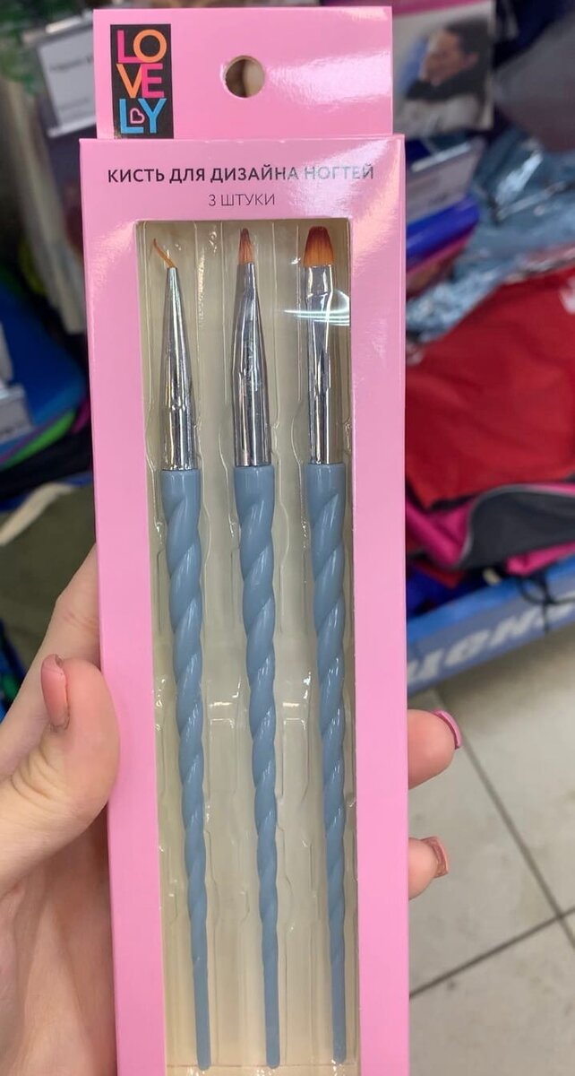 Кисти для дизайна ногтей Lovely. В комплект входят 3 кисти: тонкая для прорисовки линий, френча и узоров; средняя кисть для равномерного и аккуратного нанесения лака; самая широкая предназначена для наращивания ногтей и моделирования формы. Длина каждой кисти: 17 см. Состав: акрил, алюминий, нейлон. Стоимость - 77 руб.