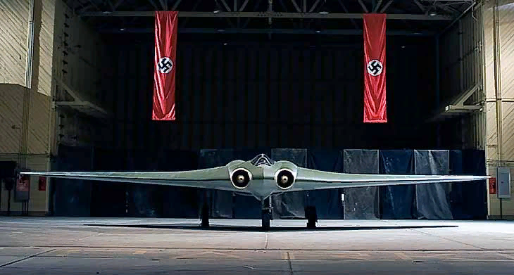 Братья спроектировали самолет Но-IV, в котором пилот располагался лежа. Потом Ho-V с двумя моторами "Хирт" НМ-60R (по 80 л. с.), двигатели были в крыле и через удлиненные валы приводили в действие толкающие винты. Но Хортены понимали, что консерватизм рейхсминистерства авиации трудно будет побороть, но немцы получили сведения о подобных работах на американской фирме "Нортроп".