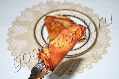 Испечь тонкие блинчики любым способом.