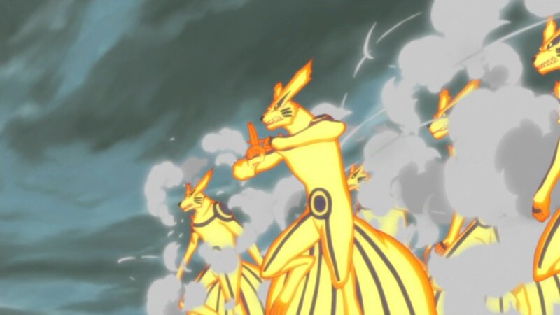 Или вот, на этом рисунке наруто создает сразу трех огромных аватаров хвостатого, на что он потратил огромное количество чакры.