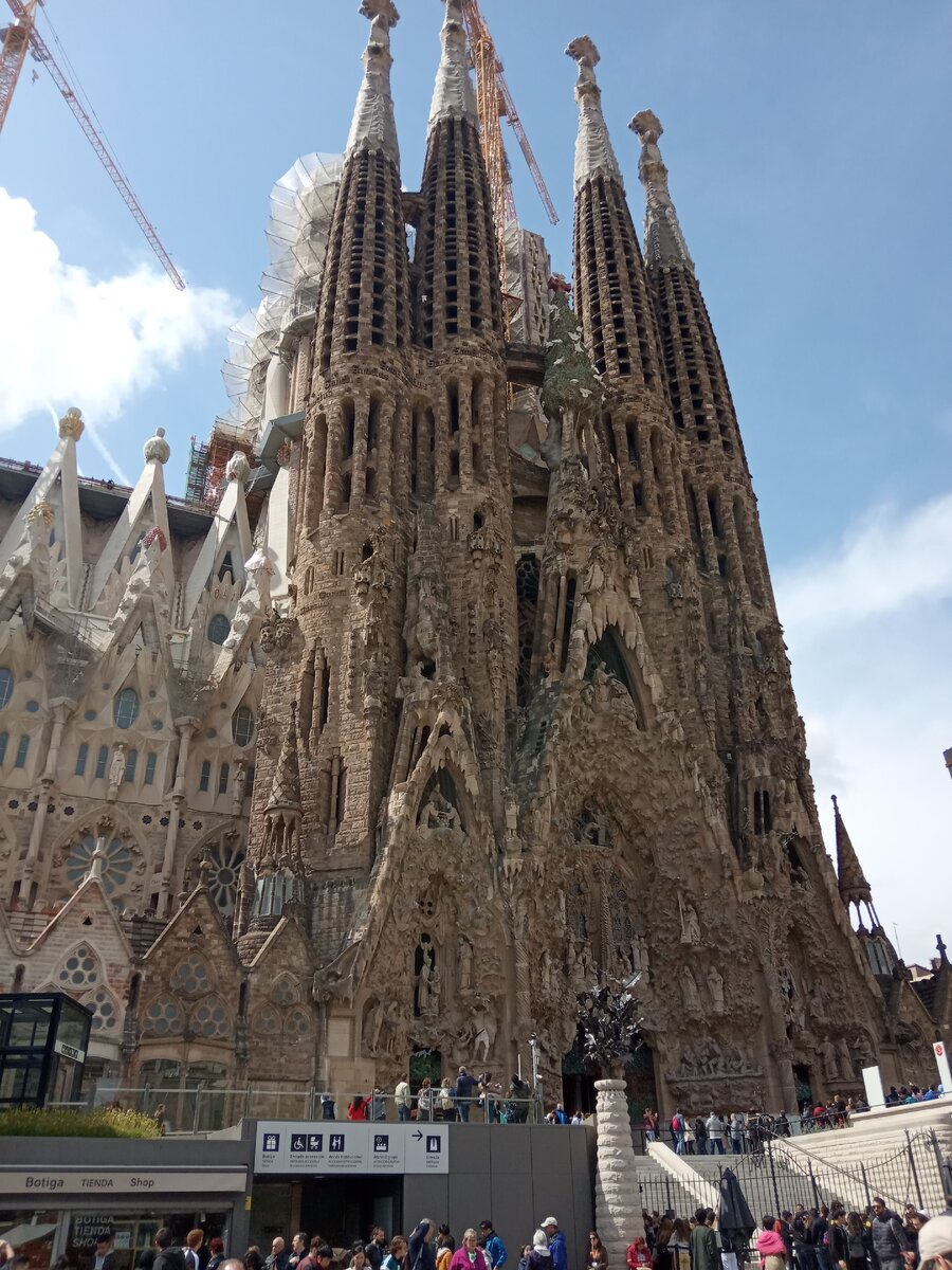 Бесспорно самое известное строение мастера-это Саграда Фамилия (собор Святого Семейства) - незавершенная церковь. Строительство началось в 1882 году и продолжается по сегодняшний день. Согласно первоначальному плану Гауди, собор должен был обладать 18 башнями: 12 олицетворяющих апостолов, 4 евангелистов и 2 последних Девы Марии и Иисуса Христа. Идея Гауди для Саграда Фамилия заключалась в создании здания-символа, грандиозной аллегории, представленной тремя фасадами, олицетворяющими: запад-Рождество Христово, восток-Страсти Христовы и юг-Вознесение Христово.