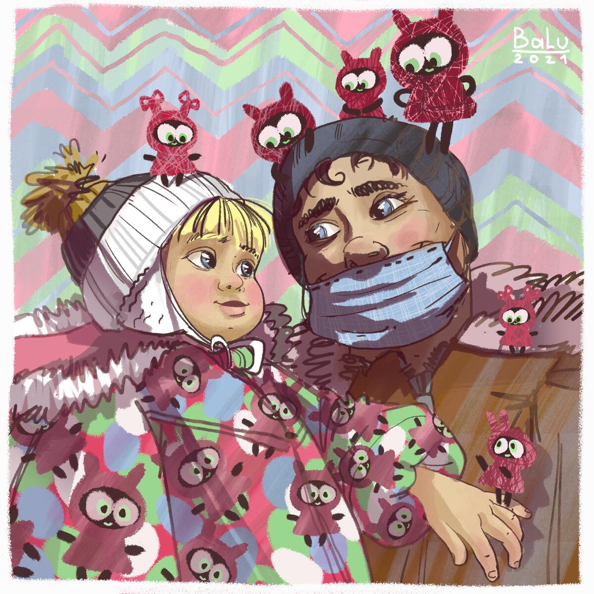 Привет! Я рада всем заглянувшим в мой блог. Сегодня хочу показать вам портрет мужа и дочки, который сделала буквально только что. Рисую я в основном поздно вечером и захватываю ночь (когда дитё спит).