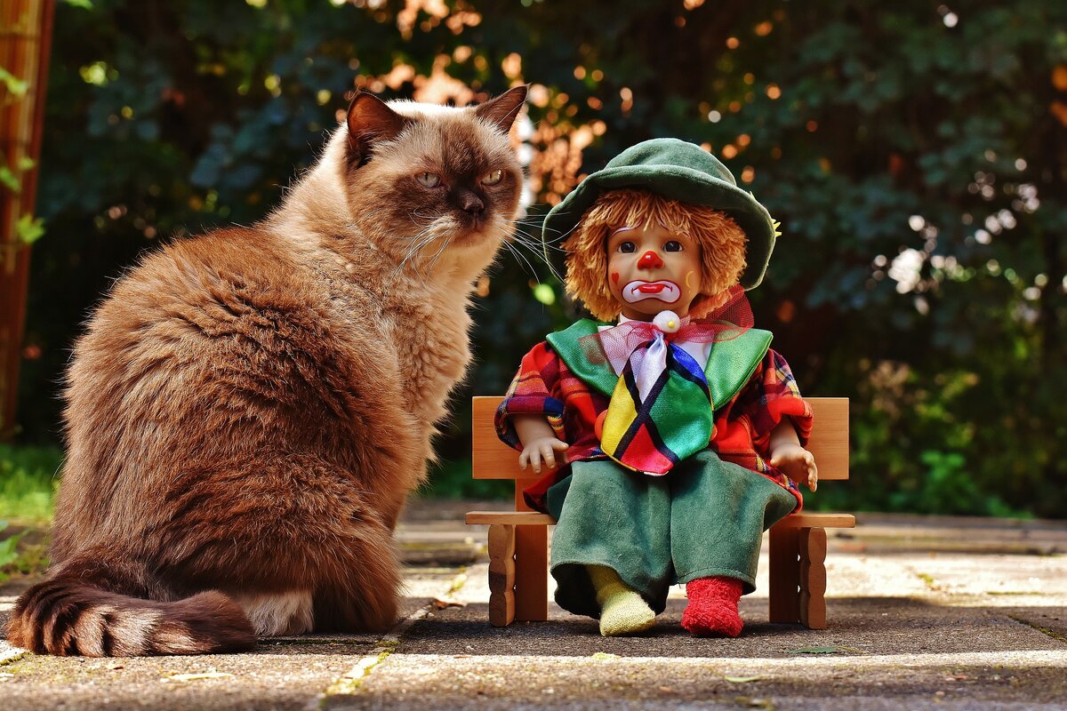 Die Puppe ist bildhübsch, dagegen ist der Teddybär hässlich.