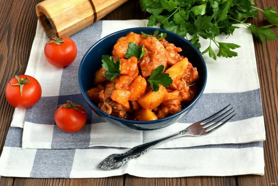 А теперь уменьшите огонь и накройте сковороду крышкой. Тушите полчаса, до мягкости мяса и тыквы.
