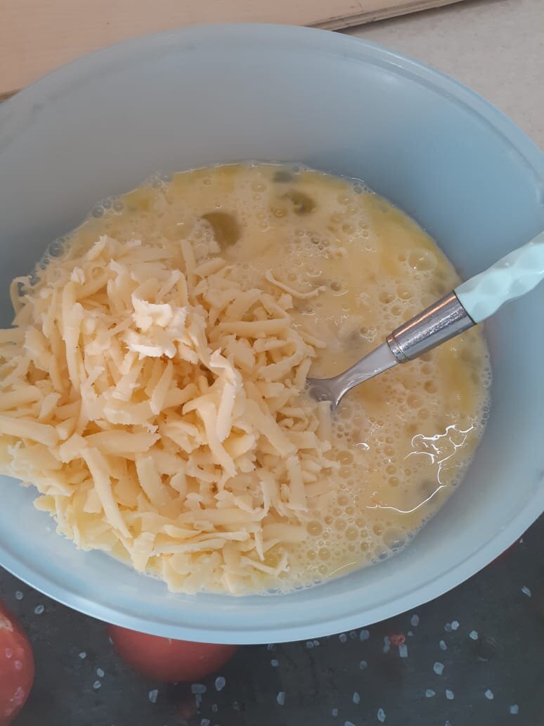 200 гр. сыра (сыр на крупной терке) перемешиваем.