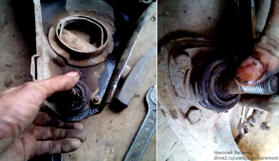 — WD-шка или другой "жидкий ключ" Из 4-х опор: одна полностью "убитая", еще одну пришлось срезать болгаркой, остальные еще могут послужить после замены пыльников. Однако, буду ме
