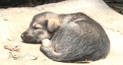 И только один, грустный, в вольере сидит щенок. Грустный, потому что сотрудники рассказали, друзей его в течение недели всех разобрали, и теперь пёсику не с кем играть.