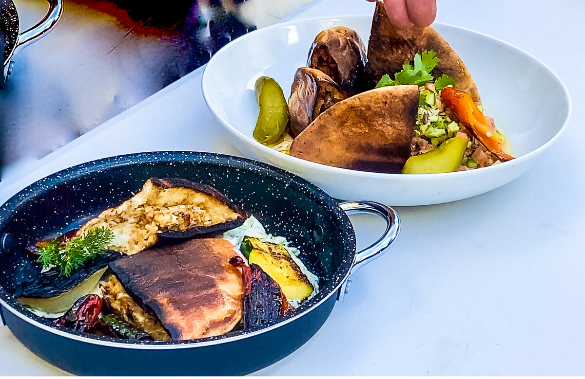 8. Подаем мясной кебаб на тхине с арабским салатом.