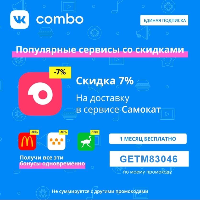 Переходим по этой ссылке (https://vkcombo.ru/promocode) , нажимаем кнопку вверху "Ввести промокод" и активируем промокод: GETM83046