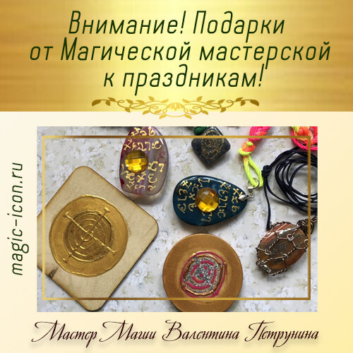 Магическая Мастерская проводит праздничную акцию: только до 10 марта (включительно) действует супервыгодное предложение – талисманы по спец.цене. Меняйте свою жизнь к лучшему – порадуйте себя и своих близких волшебными подарками от Бутика Магических Артефактов!