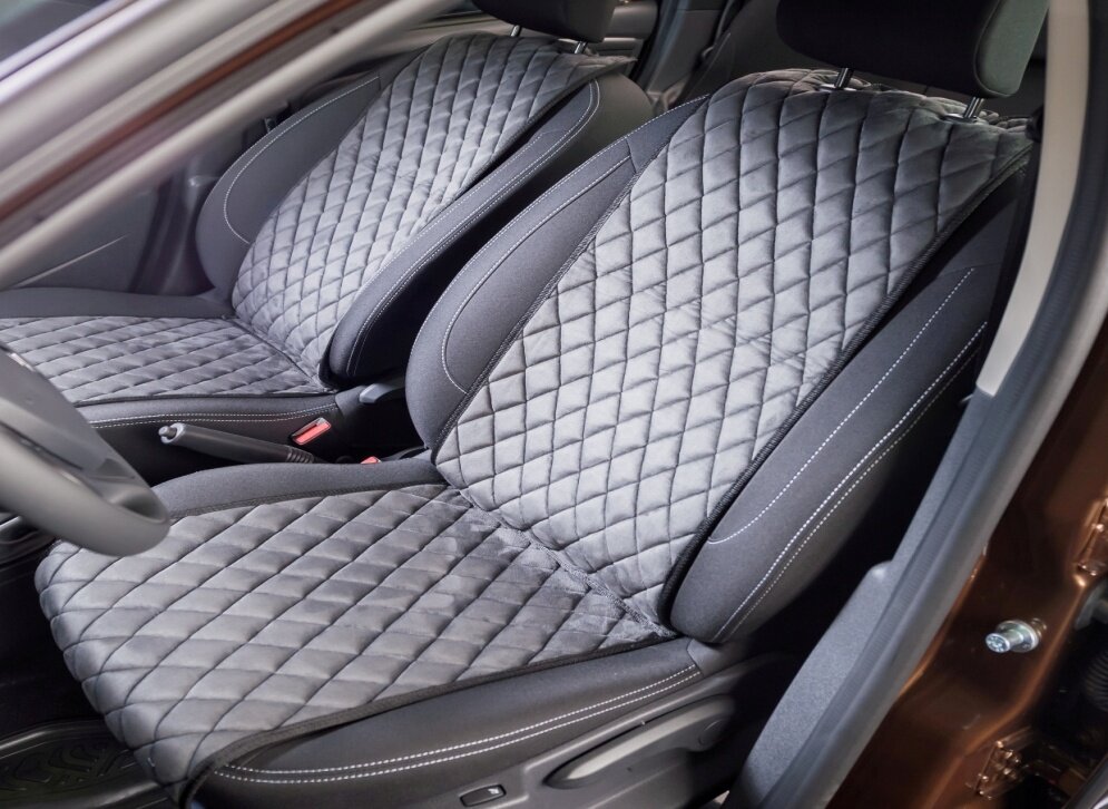 Внешне и на ощупь алькантару сложно отличить от натуральной замши. Кроме приятных ощущений, этот материал не уступает и в износоустойчивости. Для удобства и комфорта алькантара в чехлах идет на посадочной части, а экокожа на боковинах. Таким образом зимой тепло сохраняется, и водитель чувствует себя уютно. А летом ткань не перегревается. В целом, такие авточехлы не требуют сложного ухода - от