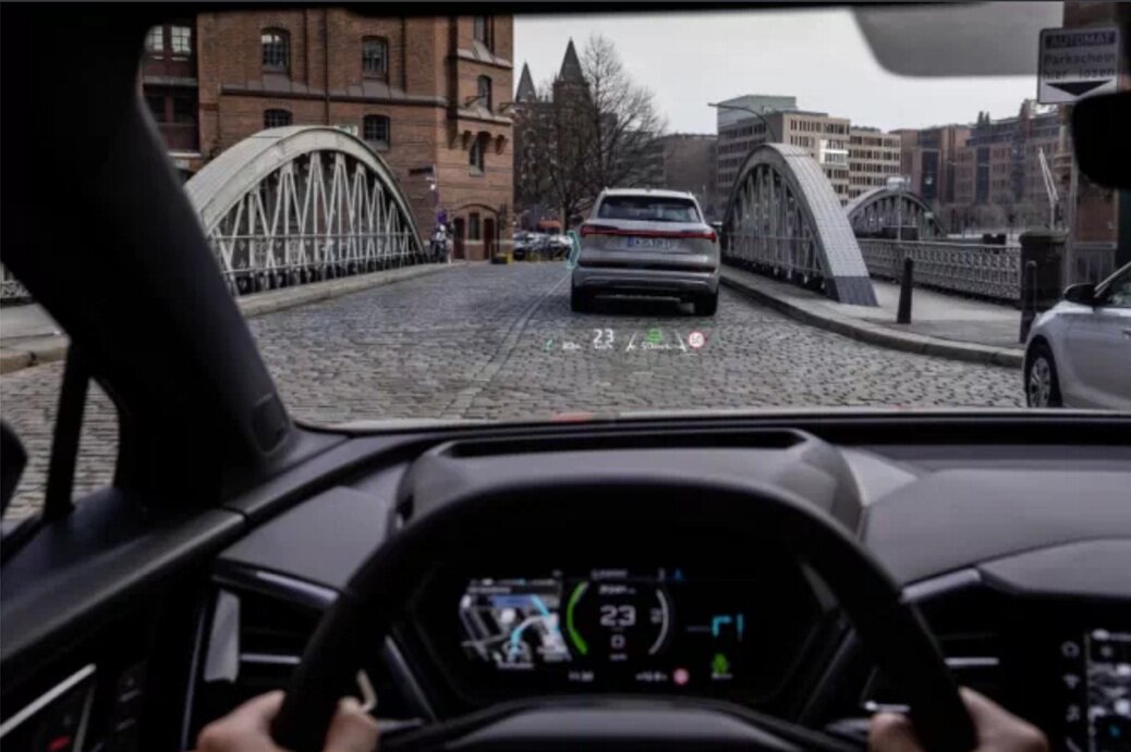 Audi оснастит свой новый кроссовер Q4 e-tron дисплеем дополнительной реальности, который будет выводить информацию приборной панели на лобовое стекло.