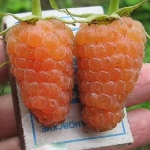 Компактный куст с колючими побегами. Крупные оранжевые ягоды длиной до 4 сантиметров и весом до 8 грамм, плотные, не распадаются после сбора с куста. Малина Оранжевое чудо среднеспелый сорт с растянутым плодоношением за счет ремонтантности, созревание начинается с конца июля и до заморозков. В тепле ягоды можно хранить до 5 дней, в холодильнике до двух недель.
