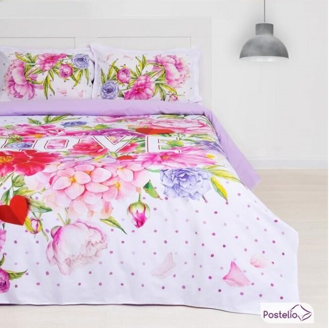 Это яркое белье сшито из макро-сатина и имеет в своем составе 100 % хлопок. Размер — Семейный: два пододеяльника 143×217, простыня 220×240, две наволочки 50×70 см.