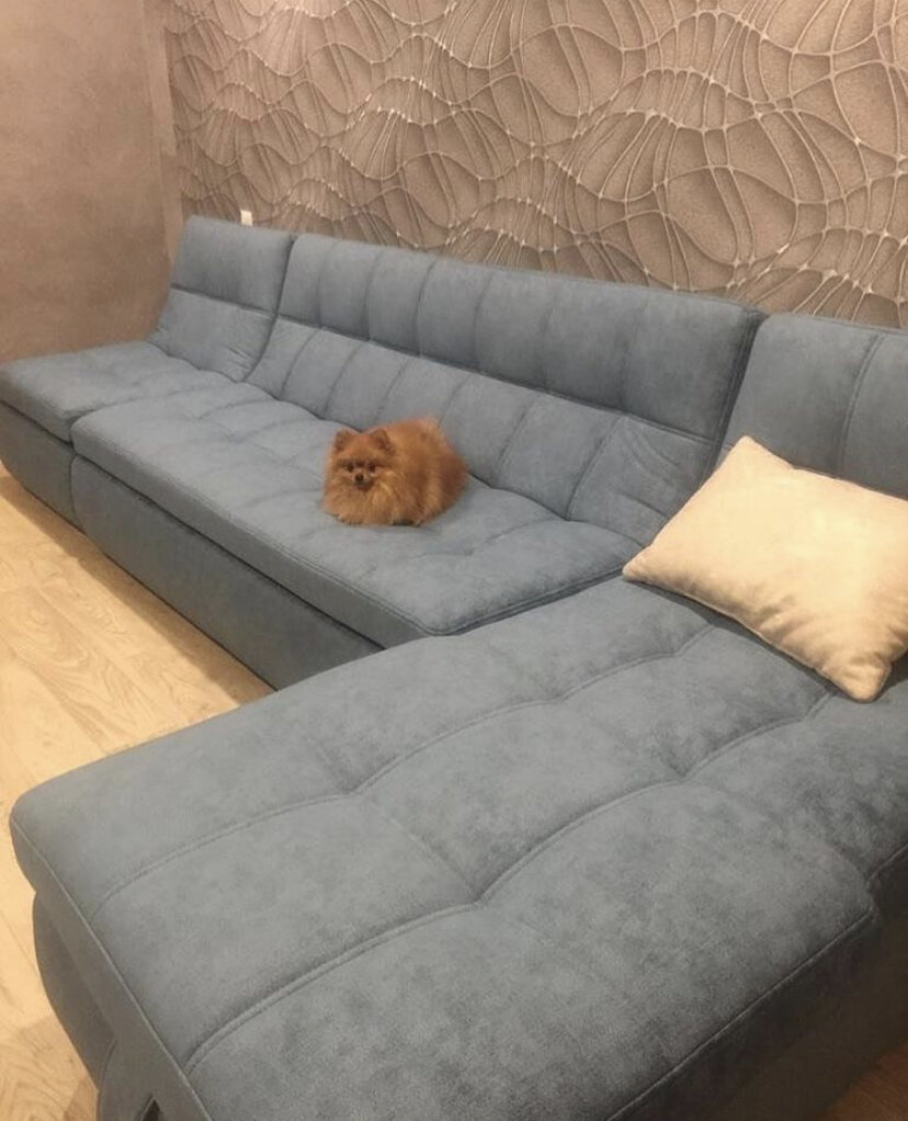 Выберите мебель с минимальным количеством деревянных элементов, которые собака сможет погрызть. Идеальный выбор, в дом в котором живет собака, - мебель с ножками из металла и без подлокотников. Предлагаем обратить внимание на угловые диваны, модульную систему для гостиной без подлокотников – «Премиум 2», «Клик-Кляк (н)».