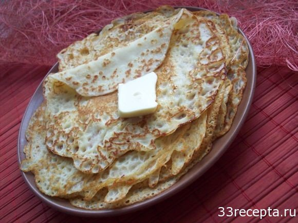 - Будет 12-14 блинчиков (наливать неполную поварешку).