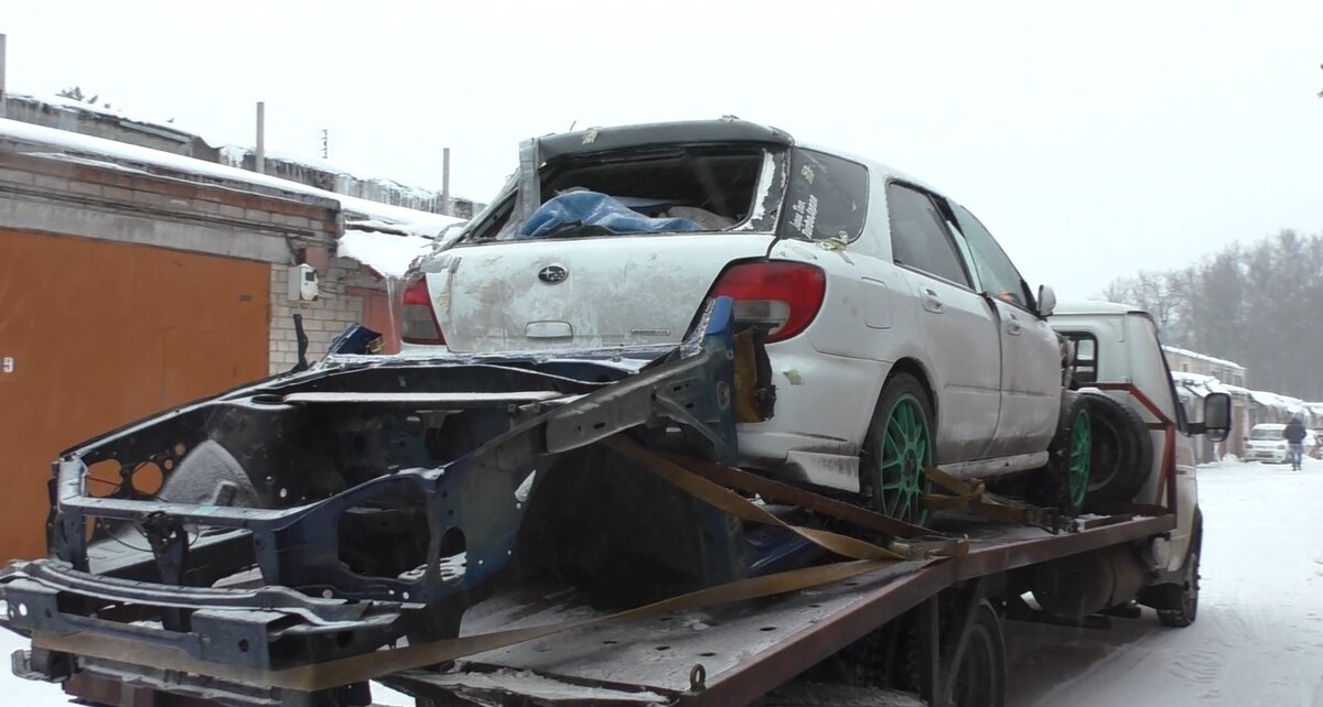 Итак Subaru Impreza с достаточно типичными повреждениями при выезде на полосу встречного движения. Лобовой удар, после которого машину начинает вращать, и остановка от жесткого удара задом об отбойник.