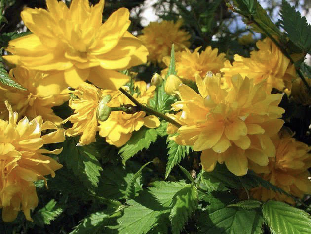 Жёлтый цвет символизирует солнце, которого нам часто не хватает, особенно осенью. А керрия японская способна озарить сад маленькими "солнышками" - чудесными махровыми цветками. Даже уже нецветущий кустарник очень декоративен летом благодаря изящной форме и насыщенной зелени листьев. А зимой кустарник впечатляет своим кружевным рисунком и ярким салатовым окрасом побегов.