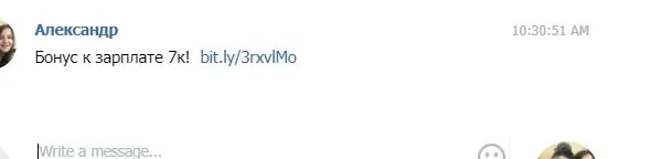 - Не открывать линки на неизвестные ресурсы. Чаще всего мошенники присылают сокращенные ссылки которые начинаются с "bit.ly". Это позволяет обойти систему безопасности социальной сети или мессенджера.