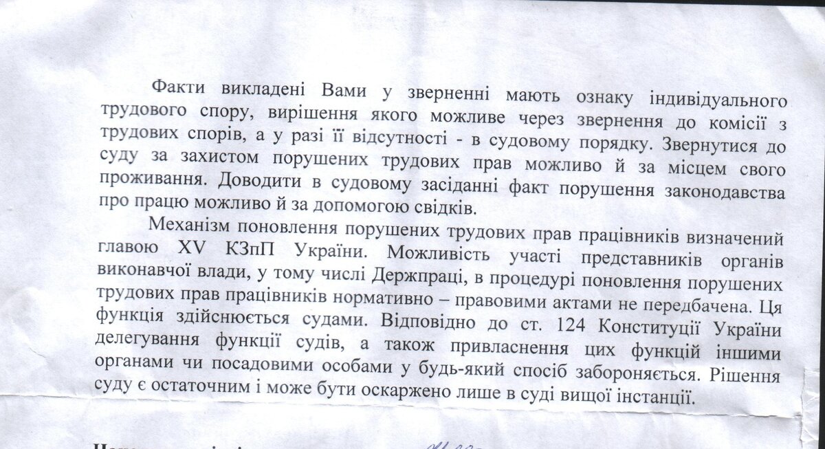 Такой ответ от Гоструда Украины.Индивидуальные трудовые споры решаются через суд.