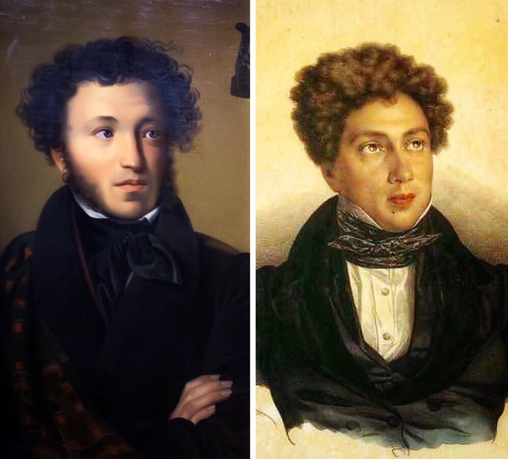 Начнём, конечно с простых сходств двух писателей. Оба были очень слабы в тех предметах, где нужно что-то считать (физика, математика и т.д.) и очень сильны в литературе соответственно. Оба были бунтари, оба были любвеобильны, и очень любили женщин. Обоим была небезразлична политическая ситуация в стране. И закончим внешностью: она практически была одинакова (см.портреты ниже), плюс у обоих были африканские корни.