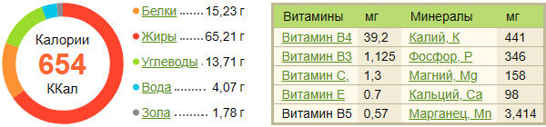 Сырой грецкий орех содержит (в 100 г):