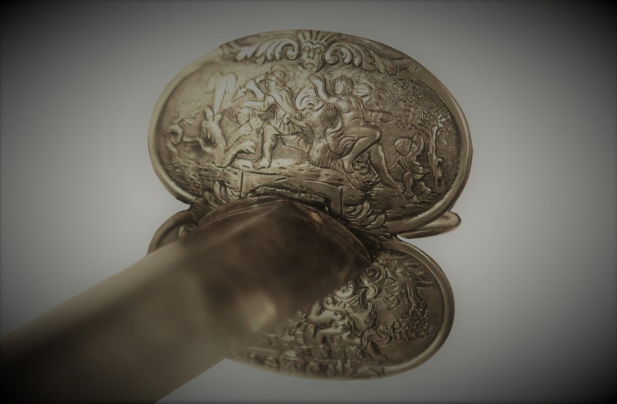 Все та же форма колишемарда и треугольное сечение клинка. Единственно, что бросается в глаза, это красивая отделка чашек гарды, защищающей пальцы - на них изображены римские боги - Марс, Венера и Купидон.