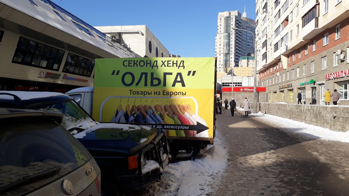 Поэтому поехала в магазины традиционного типа, которые расположены рядом со ст. м. "Комендантский проспект". Это сетевые магазины "секонд-хенд" "Во Ва!" и "Планета Секонд Хенд", рядом еще располагается магазин секонд-хенд "Ольга" (вообще мои домашние смеются над этим названием, потому что это моё имя, да и вообще, кто догадался назвать "секонд-хенд" женским именем, пусть это и правда, что "молодая была не молода", но сочетание, конечно, неоднозначное), туда я не пошла, потому что даже не поняла куда идти, хоть стрелка и показывала направление.