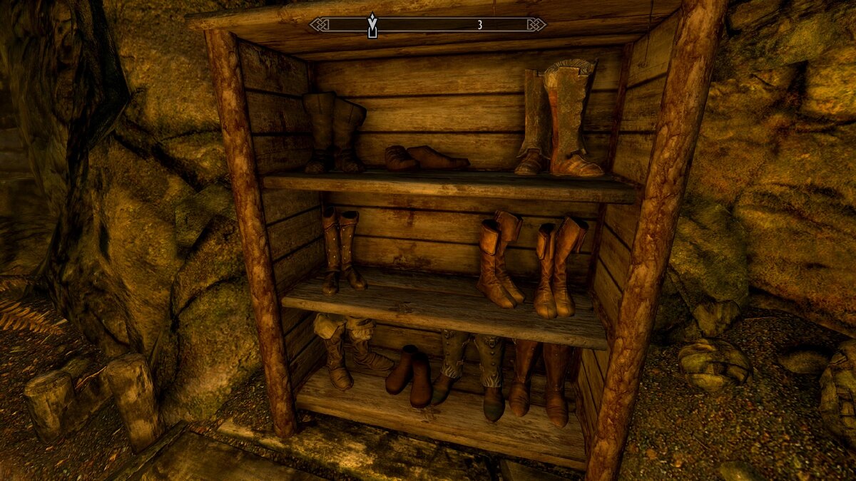 А еще у него необычное хобби – он собирает сапоги своих жертв. В его спальне можно обнаружить обувь Братьев Бури, охотников и других случайных бедняг. Для этого Моварт выделил целый шкаф. Рядом с его постелью стоят уникальные сапоги Моварта с зачарованием на скрытность – похоже, это помогало ему бесшумно подкрадываться к жертвам по ночам.