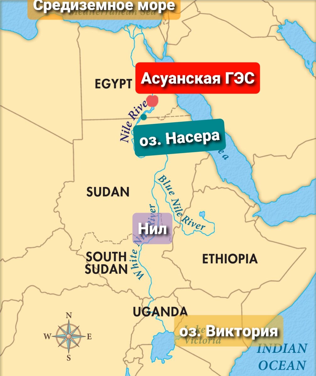 Могучая река Нил берёт начало у озера Виктория и впадает в Средиземное море. Всё население Египта - 100 млн человек - живут в дельте и долине реки. Характер у Нила был непростой. То он разливался, затапливал посевные луга и сотни деревень. То многолетняя засуха испепеляла почву, приводила к голоду и болезням. Обуздать нрав реки, предотвратить наводнения, дать стране электричество - все проблемы решала постройка плотины.