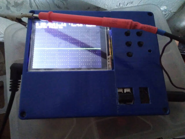 Схему смотрите в статье "Осциллографический пробник на Arduino (схема)", так как дзен любимый всеми считает, если я картинку из другой своей статьи вставлю - все, дублирую контент. Вольтметром измеряем напряжение элемента питания. Далее измеряем пробником элемент питания, и сопротивлением R6 добиваемся показаний, соответствующих измеренным вольтметром. Переключаемся в диапазон 25 вольт и сопротивлением R8 добиваемся таких же показаний (не забываем, что в диапазоне 25В цена деления 0.05, а в диапазоне 5В 0.01). Если при переключении с диапазона на диапазон "0" значительно "плывет" - значит у вас экземпляр ОУ с большим смещением входа (делитель на входе тоже делит напряжение смещения). В таком случае коррекцию можно внести на программном уровне, вычитая или прибавляя arr и arr1. И помним, что это не точный измерительный прибор, задача смотреть примерную картину происходящего.