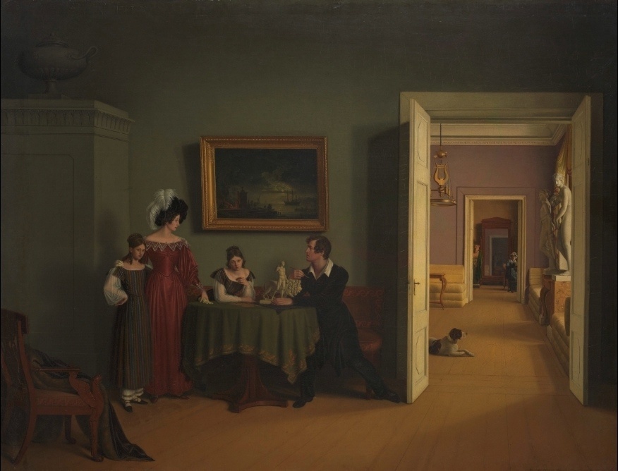 Эти милые два немца пустили корни в нашем доме и сделались совсем домочадцами в нашей семье. К обеду папенька покидал свой милый халат, облекался в черную бархатную блузу и являлся к столу красавчиком. После обеда он забирал свою восковую работу и перекочевывал в спальню маменьки на угловой диван и там, у круглого стола, в кругу дам, при свете двух сальных свечей, принимался лепить один из оригиналов будущих медалей войны 1812 года. Одна из дам читала вслух какой-нибудь страшный роман Ратклиф, другие работали... Говорят, что я тут же присутствовала, только не работала, а сладко спала за спиной папеньки; меня жалели тревожить и не уносили в детскую.