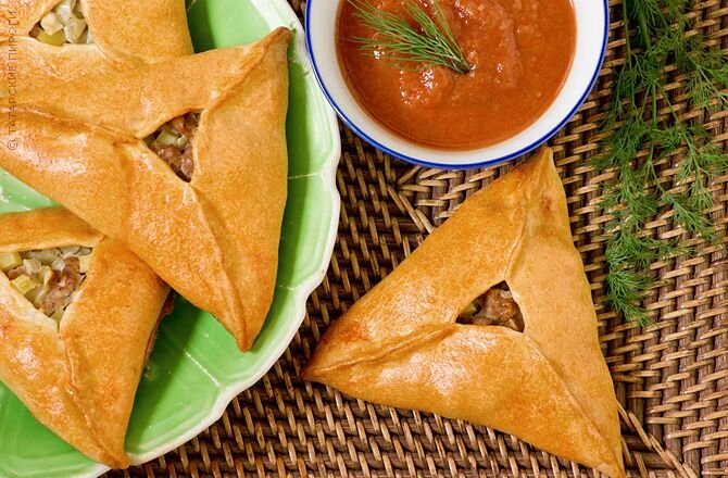 2.Начинка. Основной смысл: мелко порезанное жирное мясо (баранина, телятина, птица) , картофель, лук. Все в пропорции 1:1:1.. . Ну и соль, и черный свежемолотый перец, соответственно.