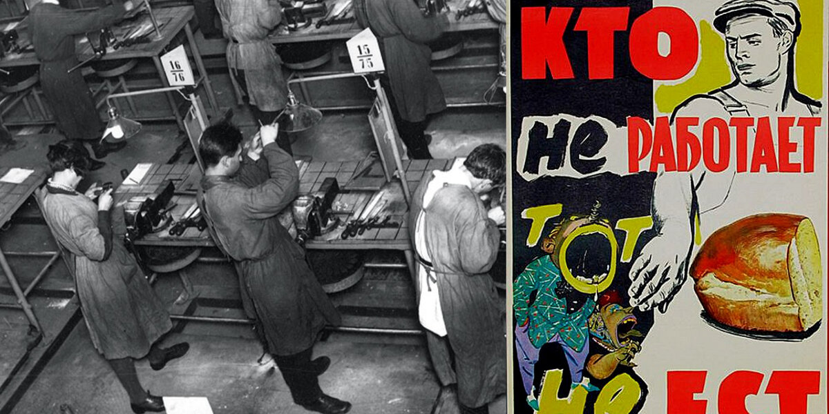 СССР всегда позиционировалась как страна рабочих и для рабочих, где каждый должен был трудиться на общее благо. А если не хочешь трудиться на благо общества, то милости просим в тюрьму.