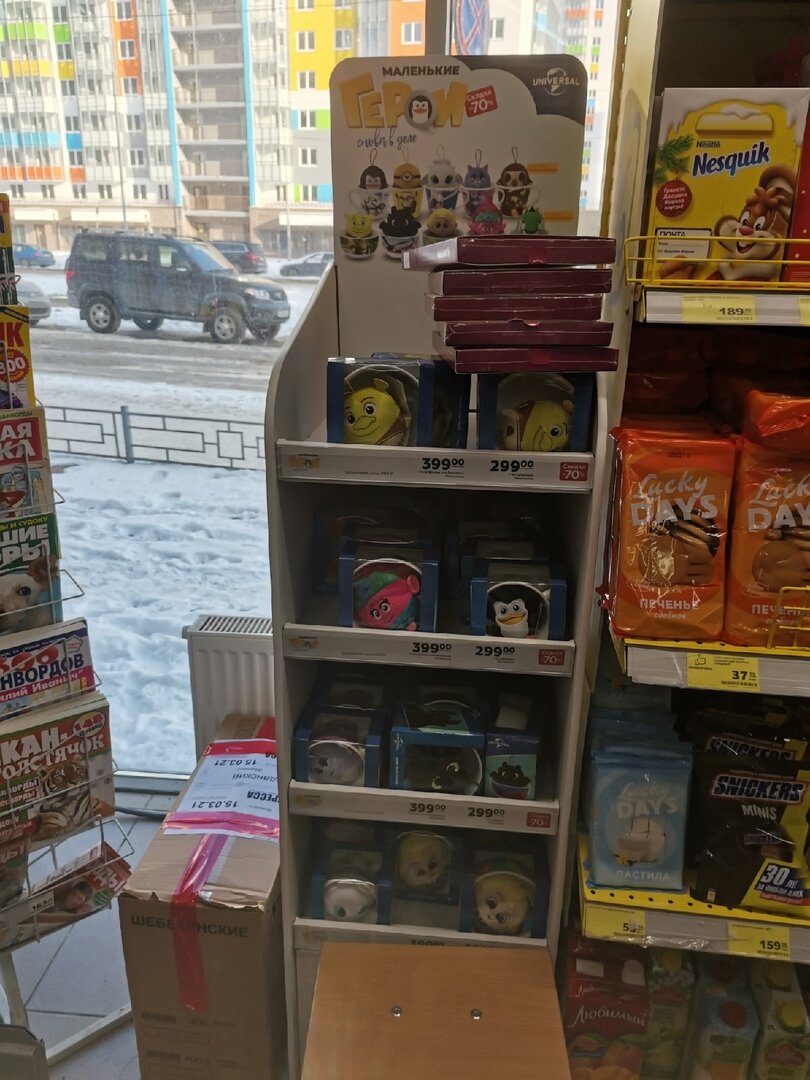 Хочу так же отметить, что в привычном "Магните" представлены не все игрушки. Миньоны появятся в продаже с 1 апреля, а два персонажа в принципе представлены только в магазинах формата "Опт" и "Семейный". Что же, вот такая получилась акция в этом году.