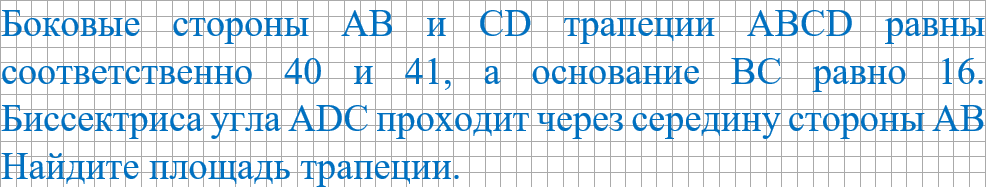 На рисунке у нас нет средней линии и высоты. Но, у нас есть условие, что биссектриса угла ADC проходит через середину AB, поэтому М - это середина стороны АВ.