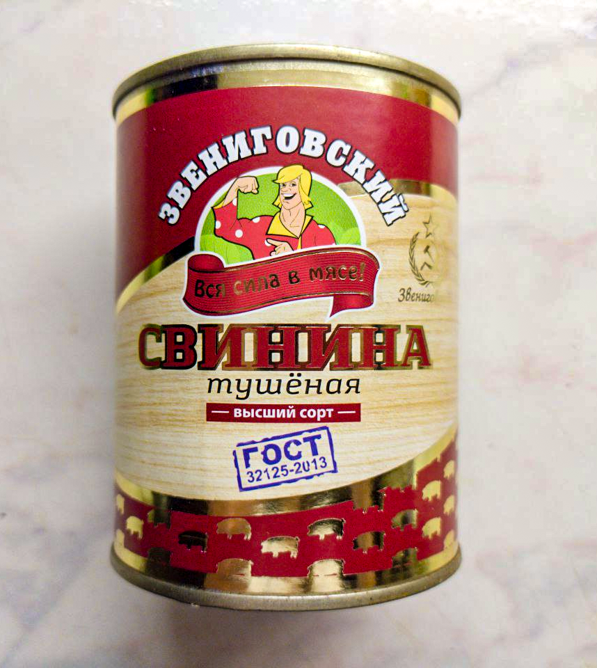 Услышали, как в магазине покупательница расхваливала свинную тушенку. Взяли на пробу 2 банки и не пожалели