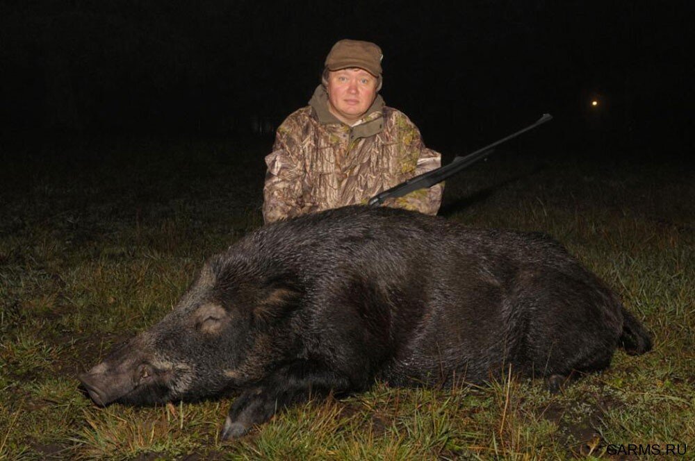 Охота на кабана одна из самых популярных и любимых среди охотников. Но тем не менее очень опасная. Каждый год бывают несчастные случаи с этим опасным зверем. Кабан очень стойкий на рану, может с легкостью разорвать собаку. Я сам лично преследовал кабана 26 километров, пока он не вышел опять на номер где его добрали. У него были три сквозных отверстия, но тем не менее он оторвался от меня километров на пятнадцать.