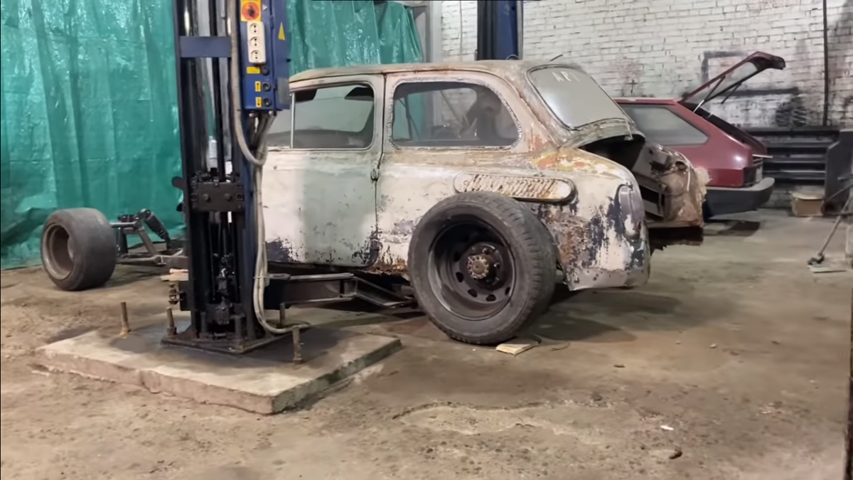 Этот проект на базе старого Запорожца ЗАЗ 965, в простонародье его называют "Горбатый". Машина много повидала на своем веку. Кузов покрывает гниль, ржавчина и несчетное количество слоев краски. Некоторые элементы, как пороги и дно отсутствуют, а все что сохранилось находится в плохом состоянии. Но это не остановило Диму.