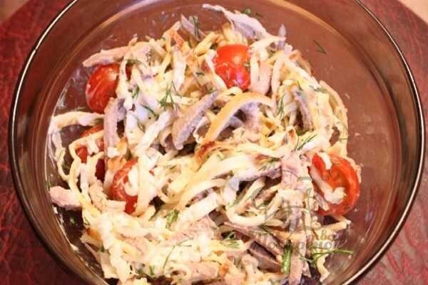 Как готовить теплый грузинский салат с говяжьей колбасой самостоятельно