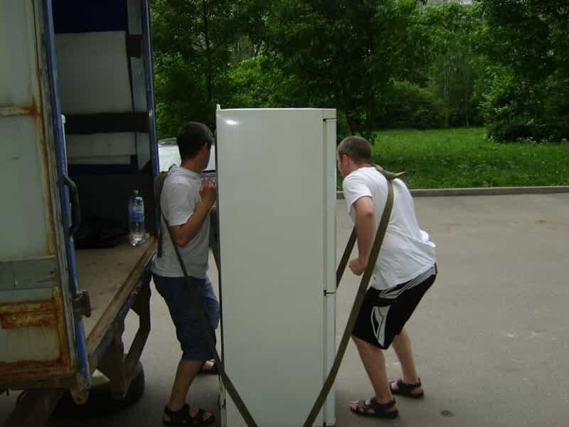 Правильно — это когда грузчики стоят спереди и сзади холодильника, а ремни выходят с боков холодильника.
