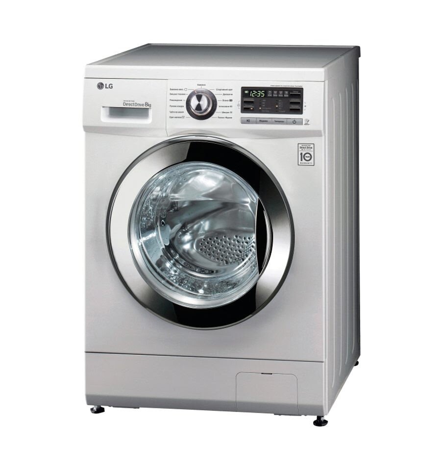 Это одна из самых дешёвых стиральных машин как в нашем рейтинге, так и в ассортименте фирмы Лджи в целом. Максимальная загрузка составляет всего 5,5 кг, зато модель узкая и подойдёт для небольшой ванной. Управление, по отзывам, удобное. Дисплей оснащен светодиодной подсветкой. Также машинка имеет опцию отложенного старта и защиту от детей. Инверторный двигатель обеспечивает практически бесшумную стирку: 53 дБ в обычном режиме и 73 дБ во время отжима. Кроме того, производитель даёт гарантию на его работу в течение 10 лет. К сожалению, регулируется интенсивность отжима не очень плавно. На выбор есть 400, 800 и 1200 оборотов в минуту. Также к минусам относят скопление воды в манжете люка.