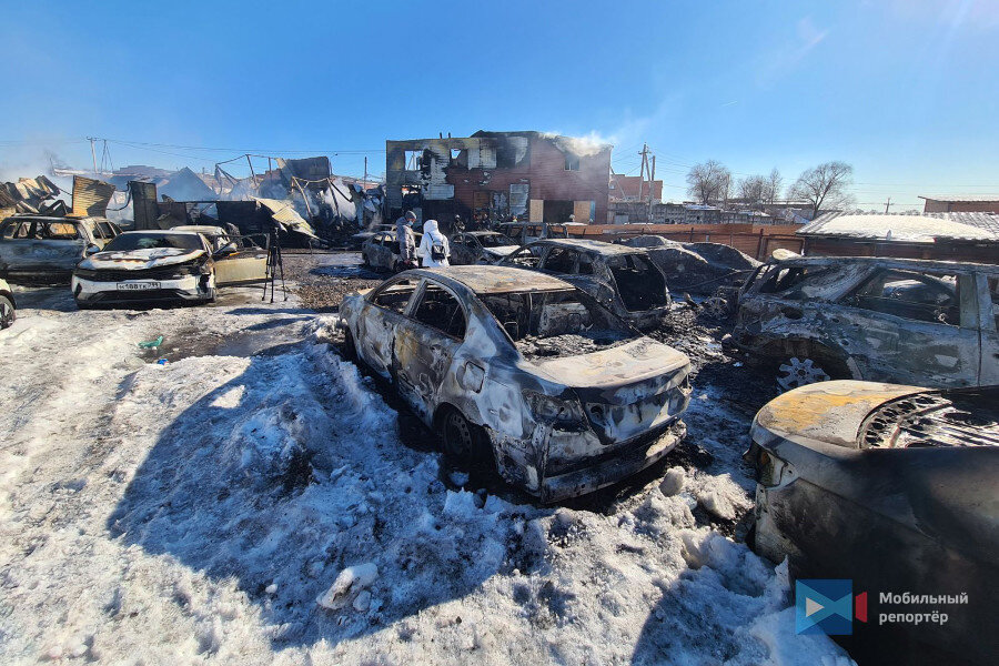 Южнее города Видное в деревне Калиновка сгорел автосервис и 22 автомобиля. Фото и видео