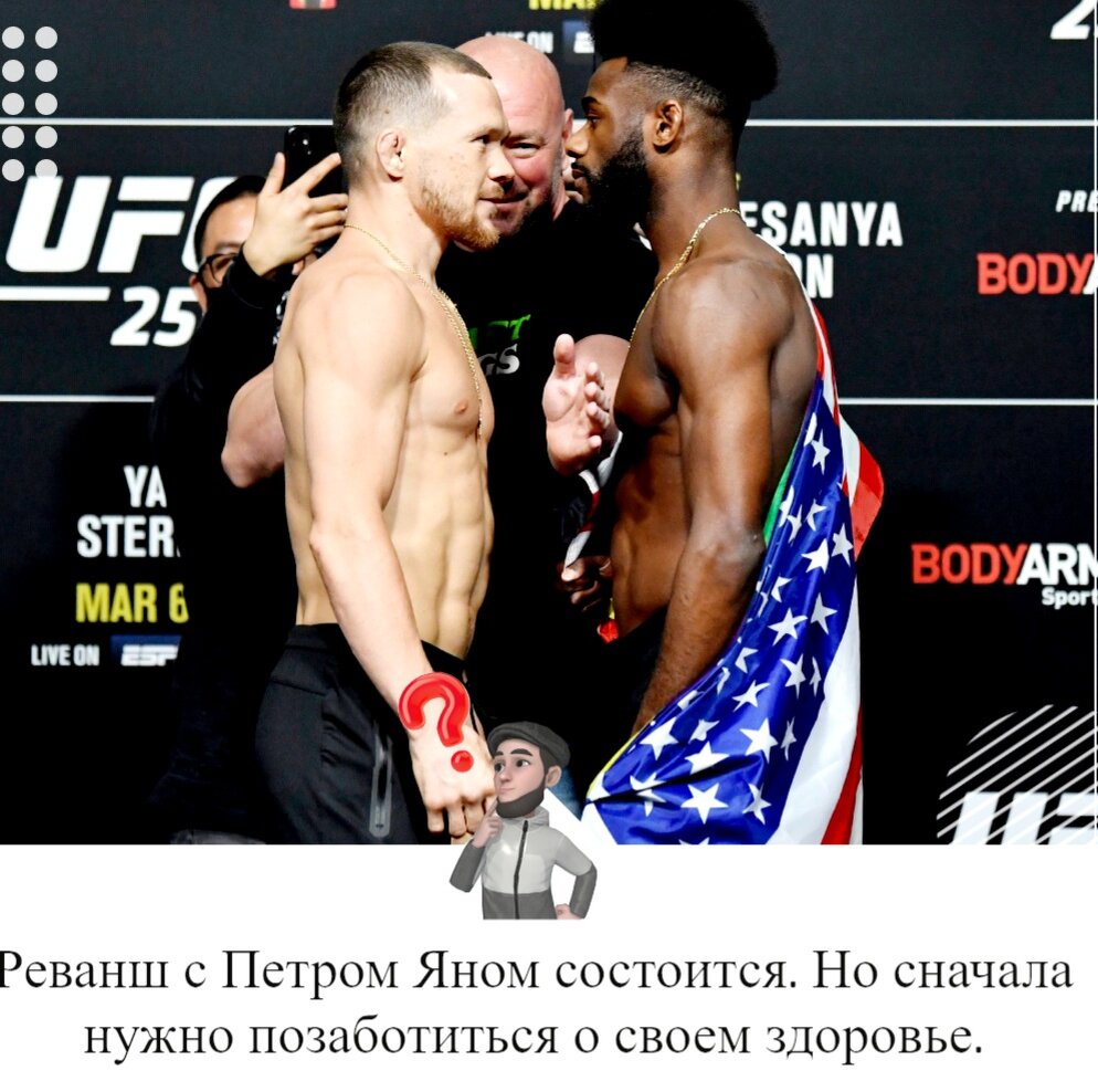 Реванш между Петром Яном экс-чемпионом в легчайшем весе от 61кг с нынешним чемпионом Стерлингом , должен состоятся . Администрация ufc еще не дала точнй ответ журналистам , но сам Стерлинг намерен защитить этот титул чемпиона . Ибо его не устраивает такая победа .