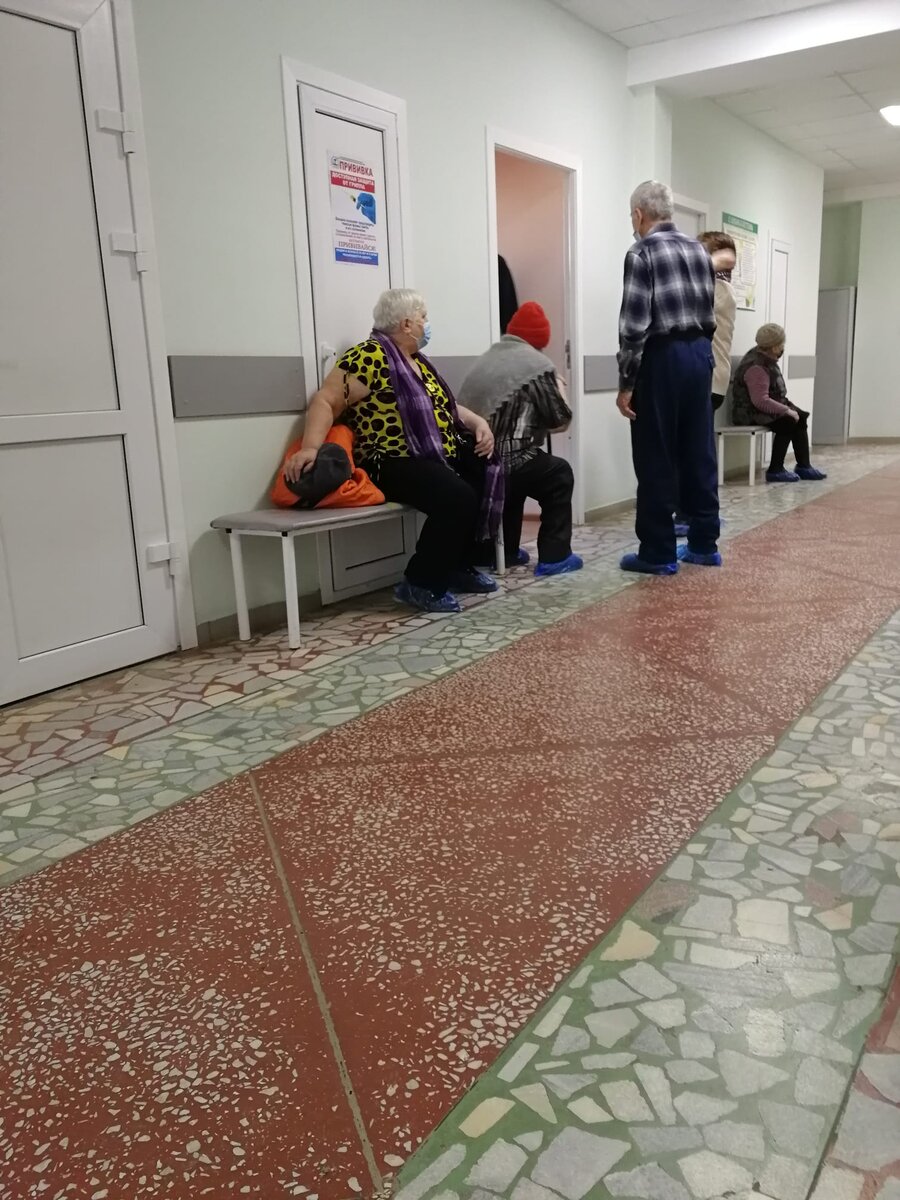 Сразу предупреждаю всех желающих, дело это небыстрое. Закладывайте на него чуть больше времени, чем дойти до кабинета и выйти из него. Потому что кабинетов больше одного, во всех очереди, это первое. Второе, вакцинируют по пять человек, вот пятеро сдали документы в кабинет и тогда только они достают из холодильника порцию вакцины. Остальные ждут, пока наберется еще пять.