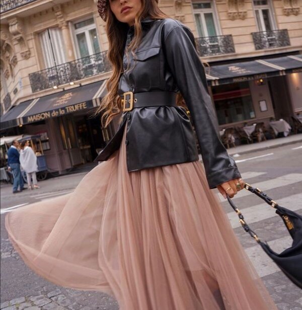 Кожаные оверсайз куртки с платьем, с юбкой выглядят просто волшебно, любая модница имеет у себя в гардеробе такую, а если нет, то нужно срочно исправлять!