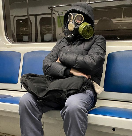 На удивление, вагон пустой. И вдруг на следующей остановке входит вот этот персонаж и садится напротив меня: